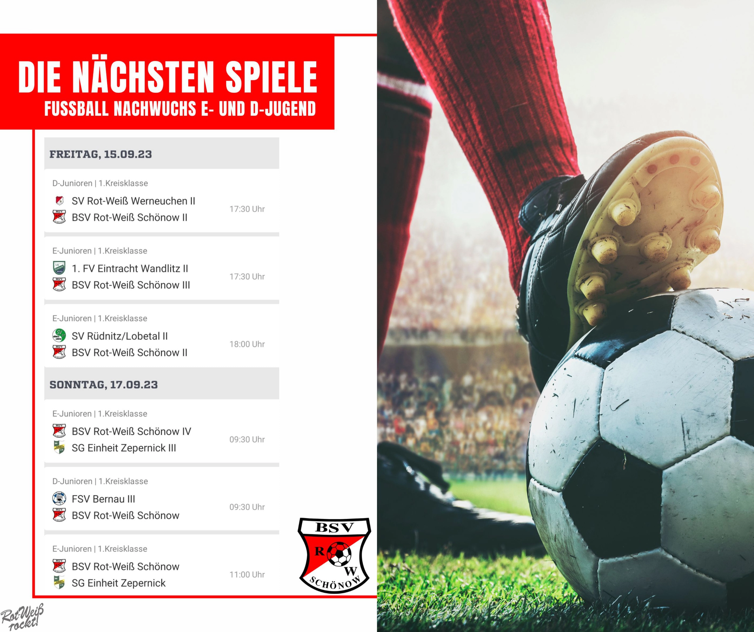 Schon Freitagabend geht’s los mit Heimspielen unserer C-Junioren und Ü40-Herren auf unseren Sportanlagen in der Ortsmitte. Kommt da also schon vorbei und unterstützt die Teams!